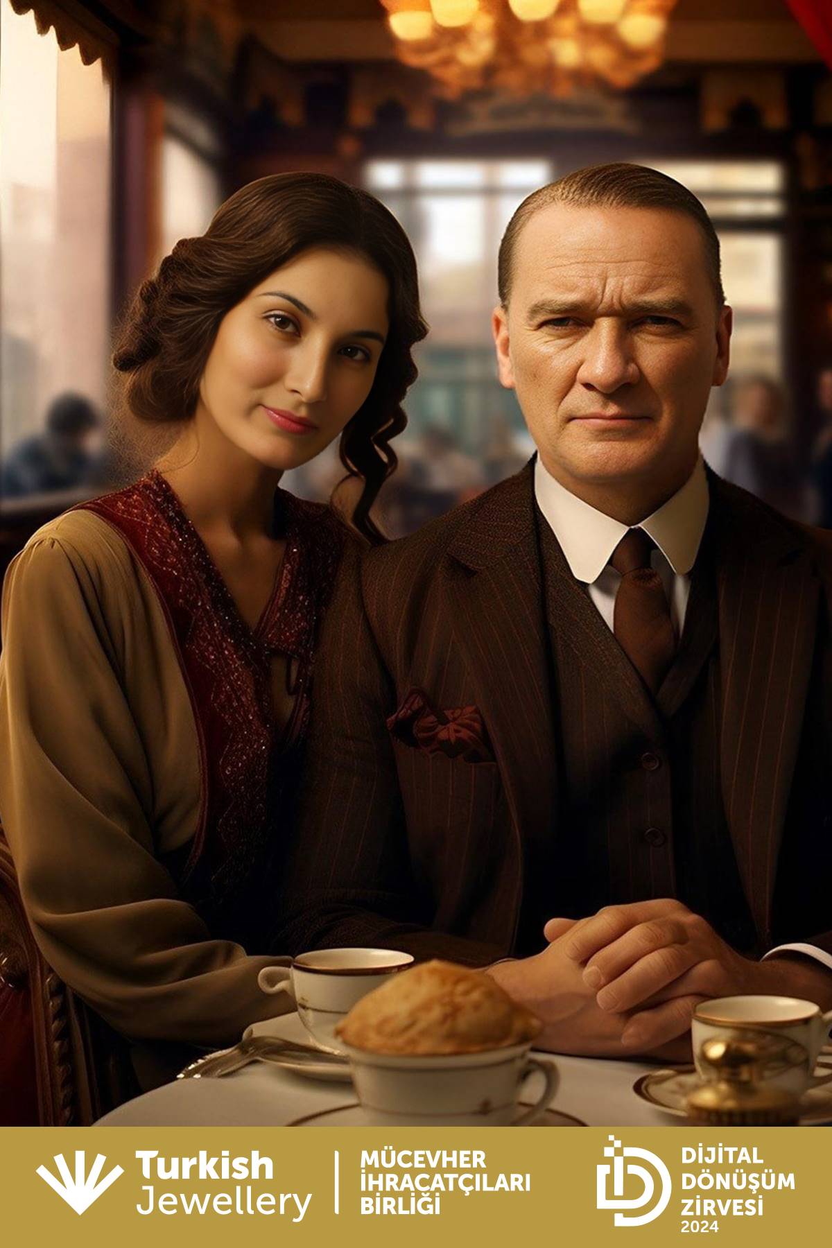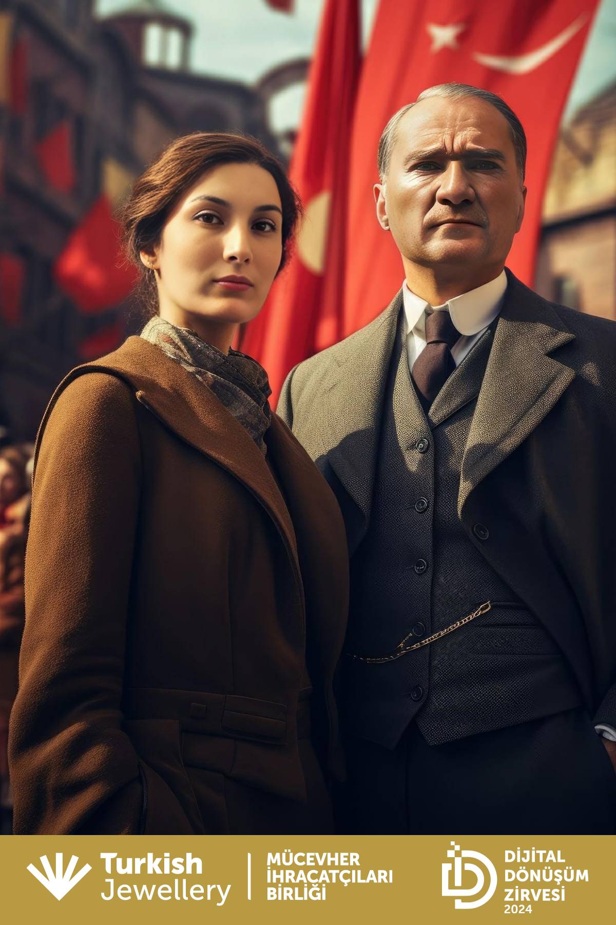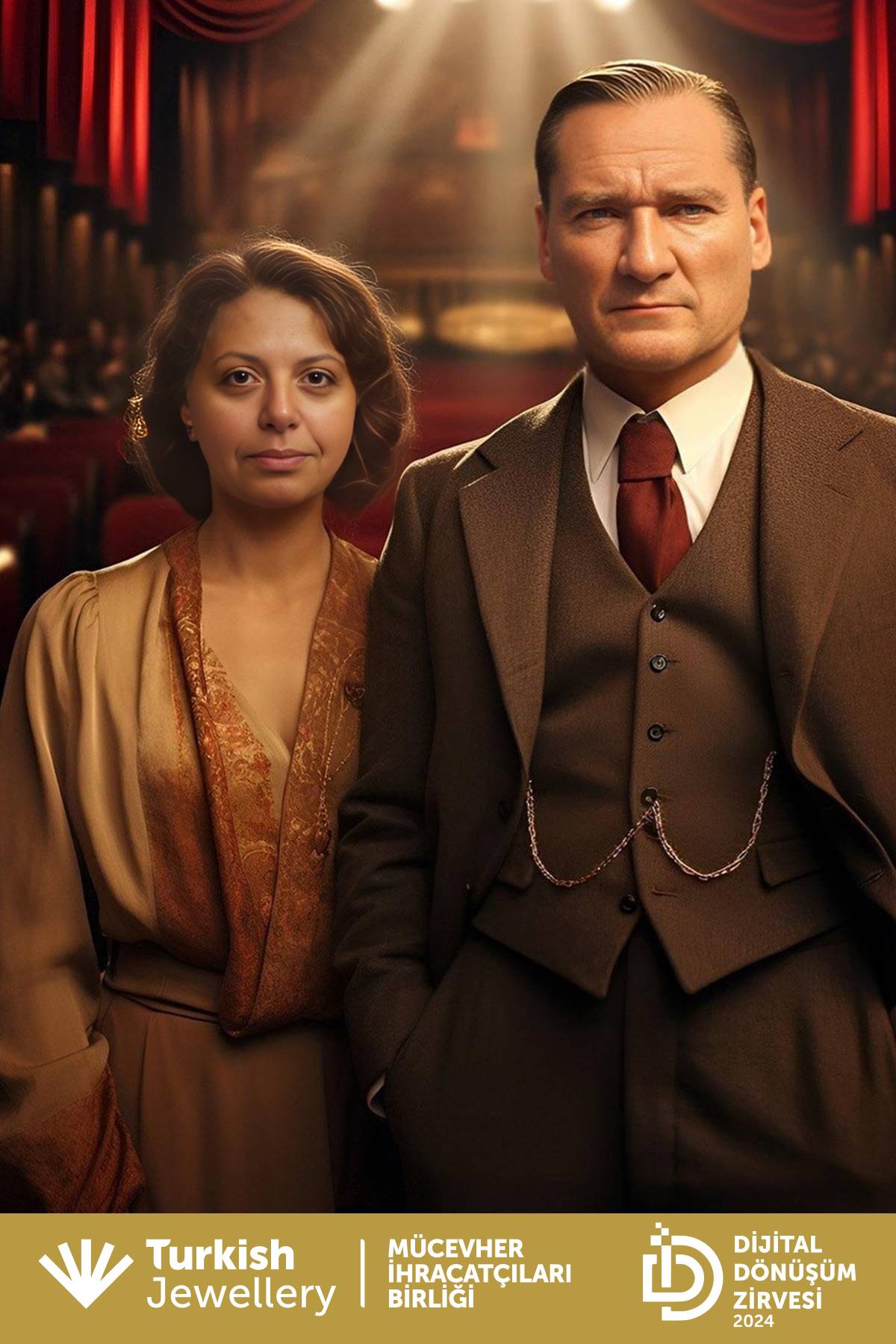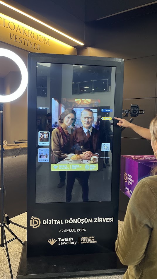 On Friday, September 27, the Jewelry Exporters’ Association organized the “Innovation in Jewelry” event at the TİM Şehit Ömer Halisdemir Conference Hall. This event, which took place at the Digital Transformation Summit, addressed the role of digital innovations and technologies in the sector. One of the most striking activities at the event was the participants’ experience of taking photos with Atatürk using AI Photo Booth.