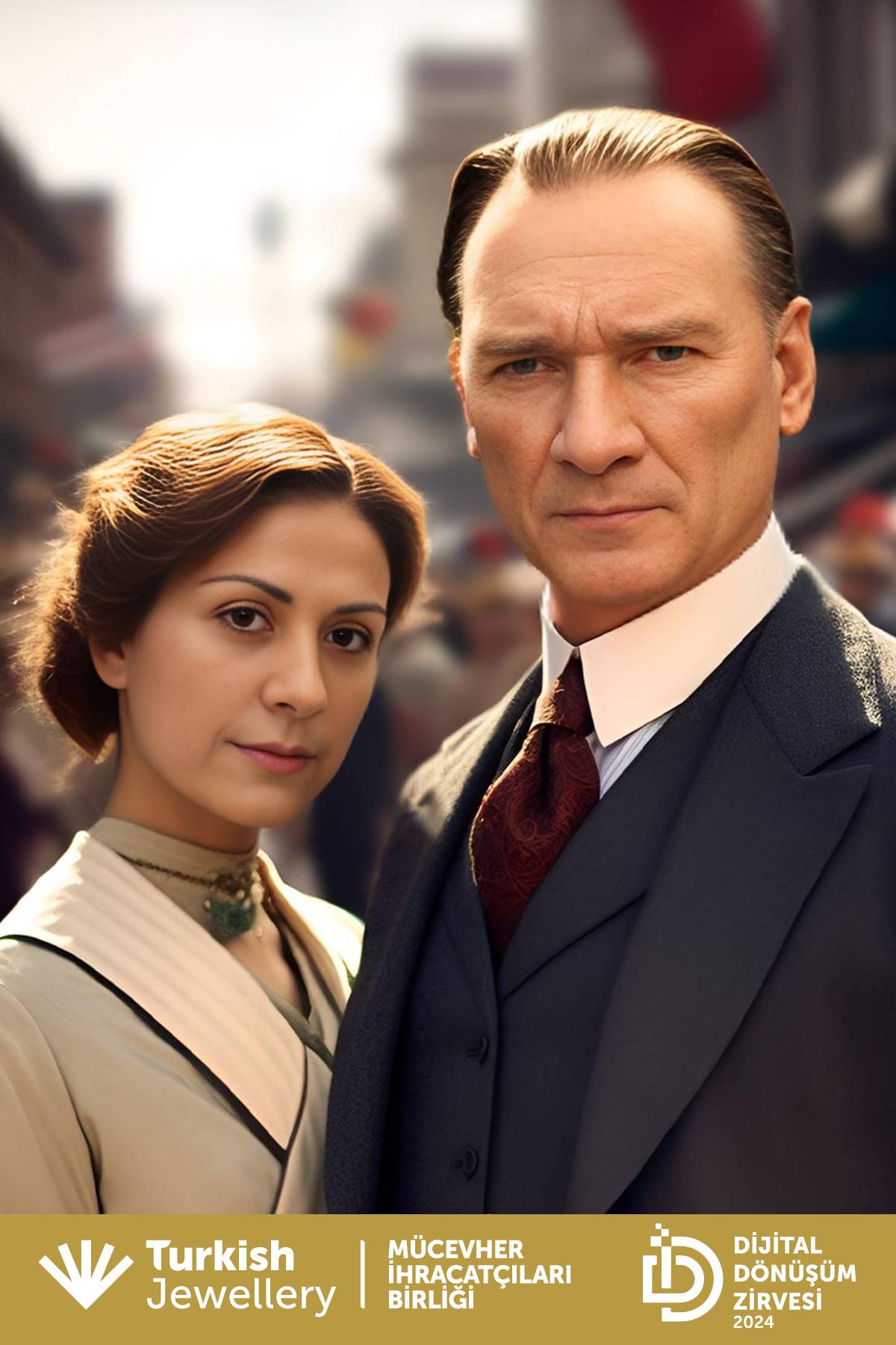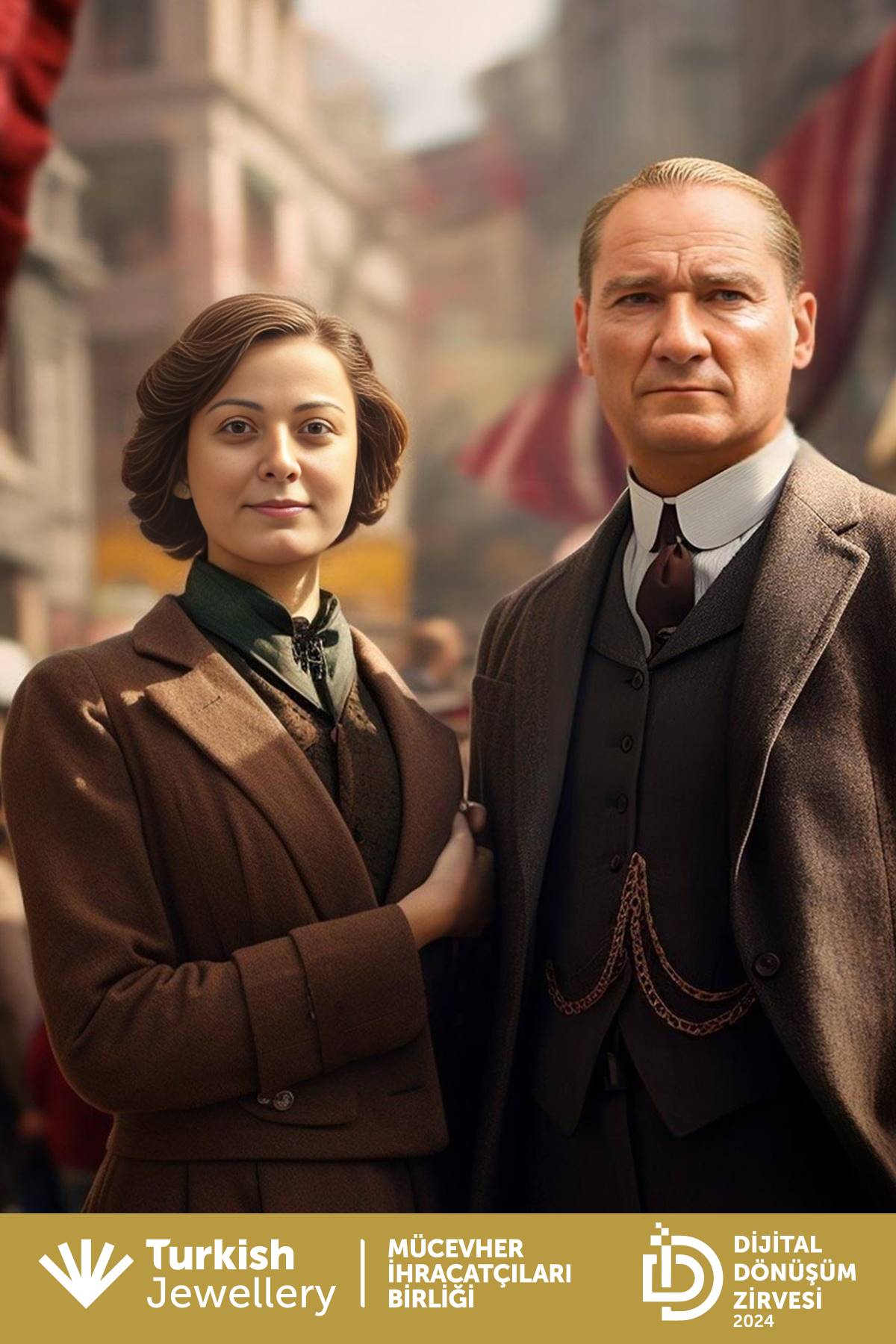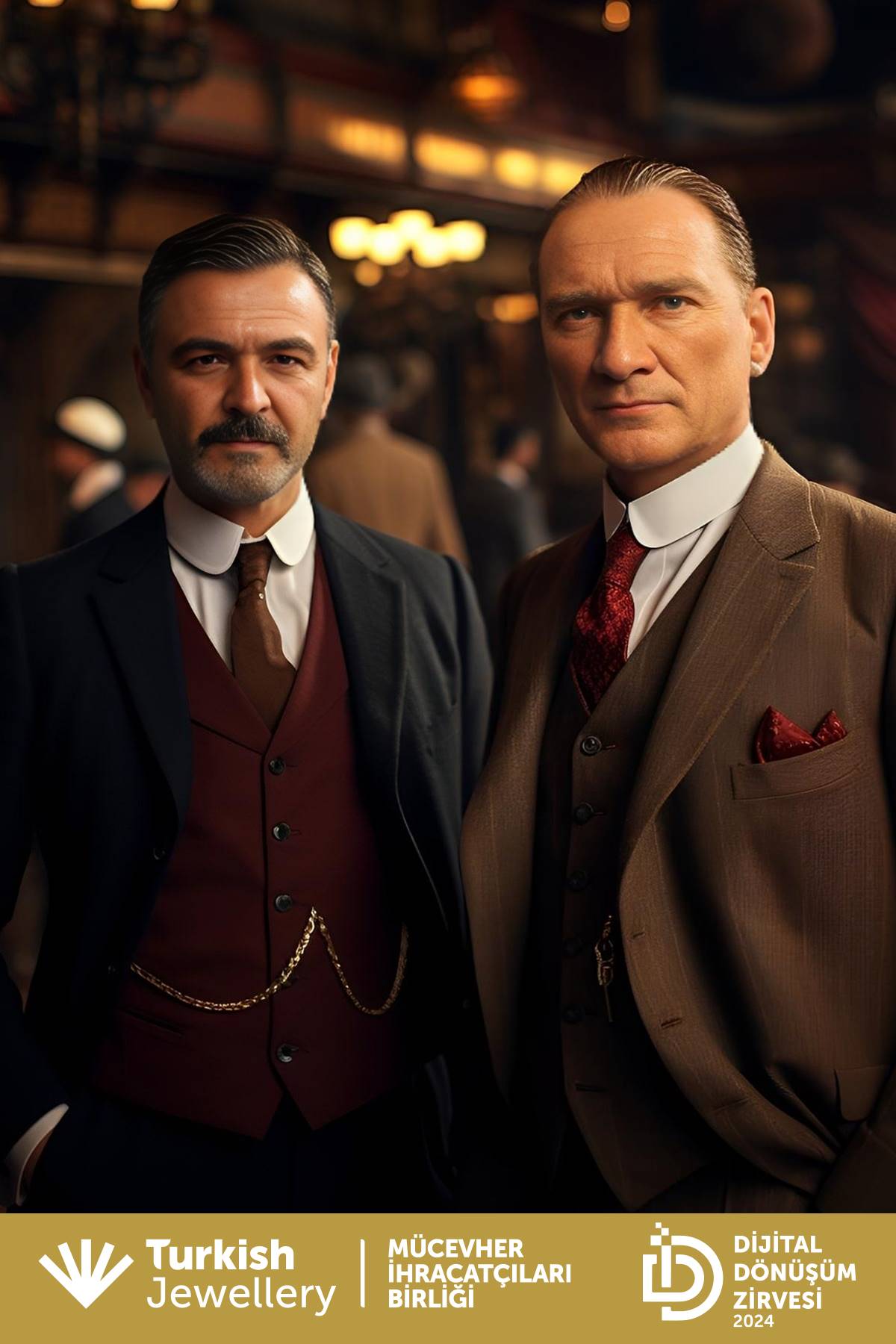 On Friday, September 27, the Jewelry Exporters’ Association organized the “Innovation in Jewelry” event at the TİM Şehit Ömer Halisdemir Conference Hall. This event, which took place at the Digital Transformation Summit, addressed the role of digital innovations and technologies in the sector. One of the most striking activities at the event was the participants’ experience of taking photos with Atatürk using AI Photo Booth.