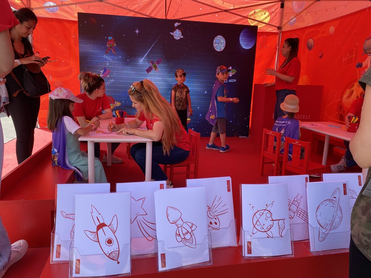 Katılımcılar, etkinliğe özel olarak tasarlanmış karakterlerden birini seçerek renkli kalemlerle boyama yaparlar. Yapılan boyamalar daha sonra görevliye teslim edilir ve görevli, karakterleri dijital ortama taşıyarak dev bir ekranda katılımcıların isimleri ile birlikte akvaryumda sergiler.