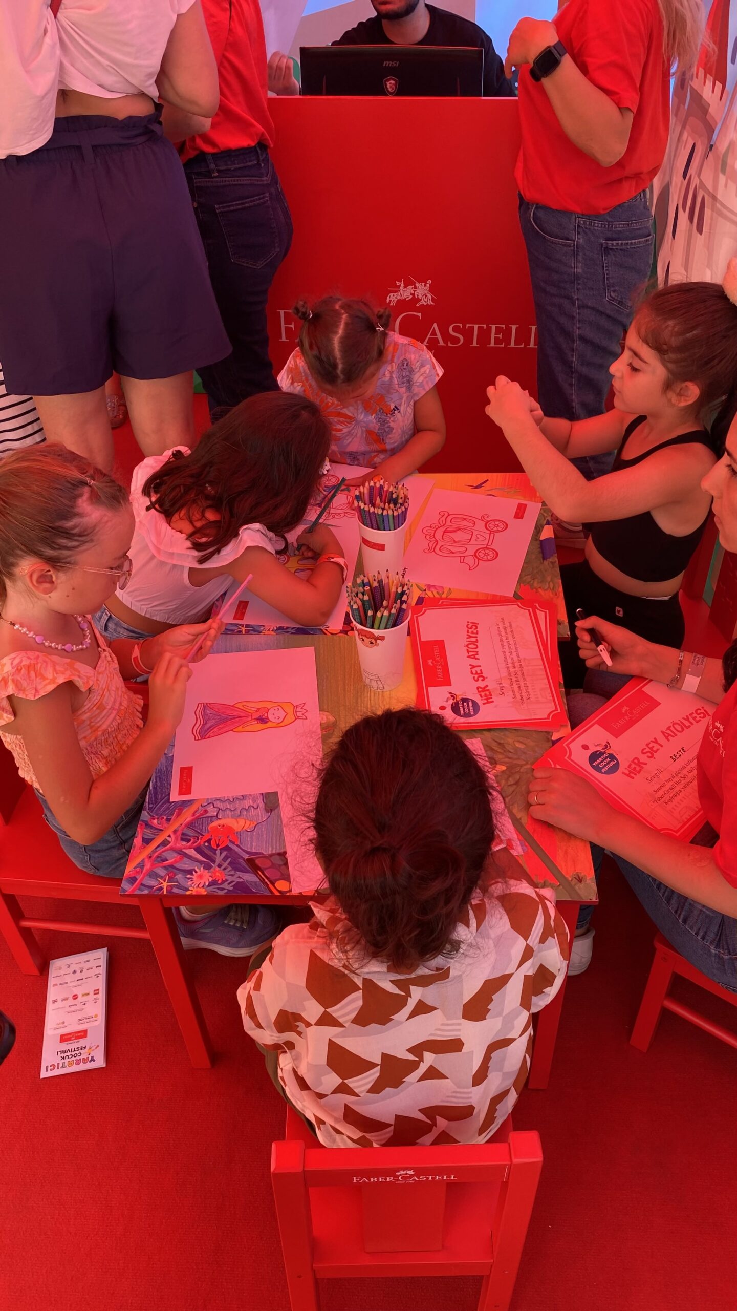 Katılımcılar, etkinliğe özel olarak tasarlanmış karakterlerden birini seçerek renkli kalemlerle boyama yaparlar. Yapılan boyamalar daha sonra görevliye teslim edilir ve görevli, karakterleri dijital ortama taşıyarak dev bir ekranda katılımcıların isimleri ile birlikte akvaryumda sergiler.