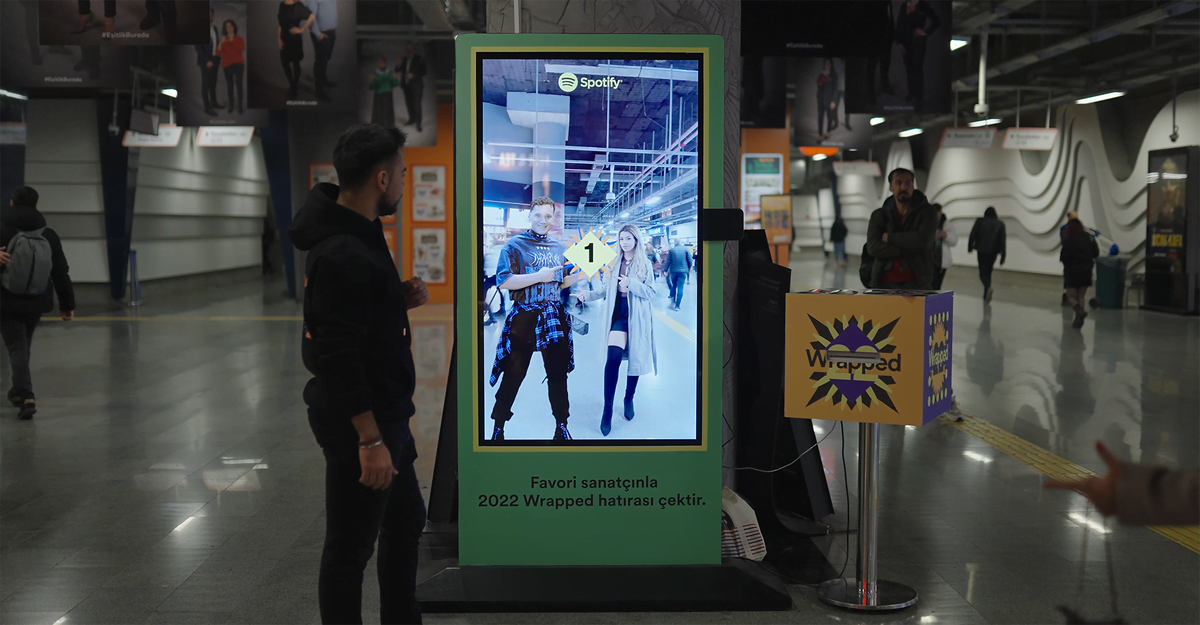 Dünyanın en büyük çevrim içi müzik dinleme platformu Spotify, 2022 yıl sonu özetini sunarken sınırları aşan bir deneyimi beraberinde getirdi. Bu eşsiz etkinlikte, özel olarak tasarladığımız Augmented Selfie ürünü ile müzikseverleri benzersiz bir yolculuğa çıkardık.
