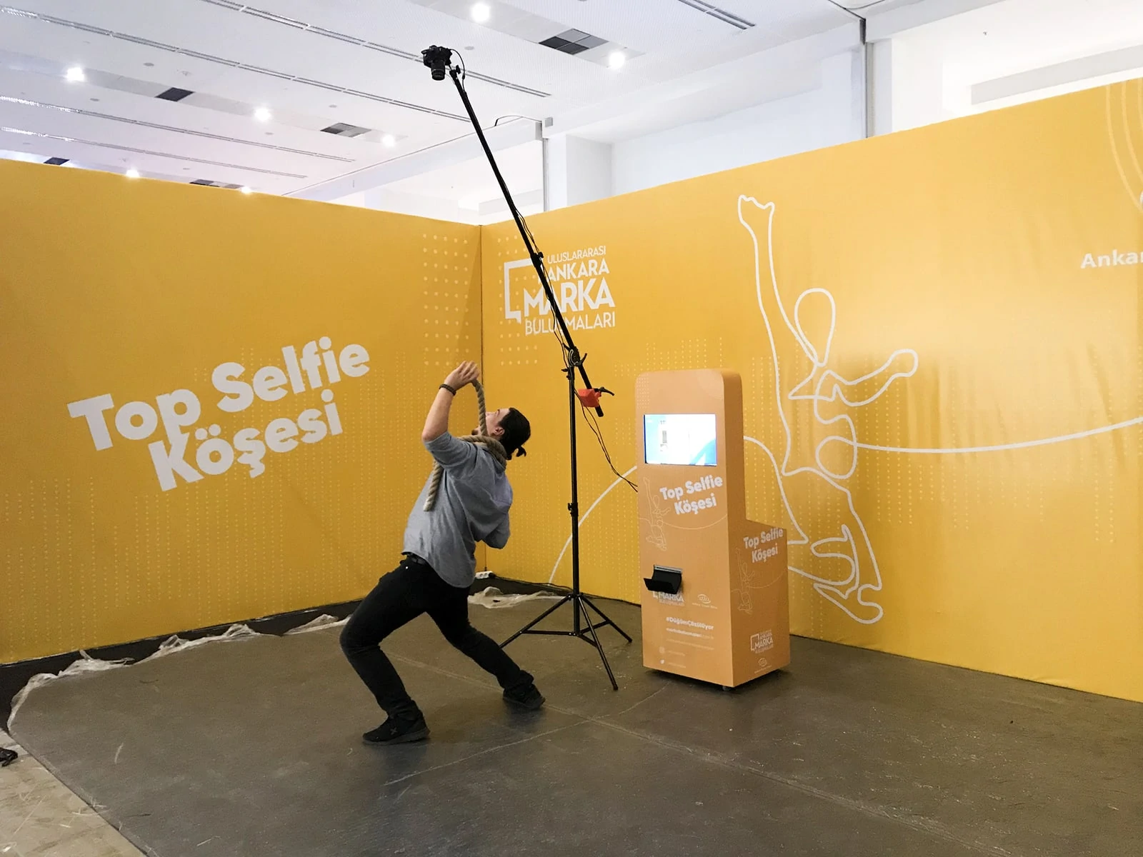 Geleneksel fotoğraf kabinlerinden farklı olan Top Selfie, kamerası yüksek bir konumda ve özel olarak tasarlanmış bir arka plan üzerinde yer alır. Ürünün profesyonel kamerası, özel ışık sistemi ve dikkat çekici etkisi ile etkinliğinizde göz alıcı bir fotoğraf deneyimi sunar.
